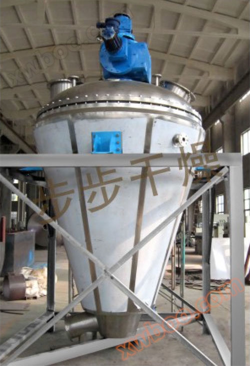 1 . المواد في مخروط واحد فراغ مجفف خلط يسخن في الحاوية بإحكام على الجدار الداخلي من الحاوية ، شفرة المروحة تدور من أسفل إلى أعلى في الجزء العلوي من الحاوية ، ثم دوامة أسفل على طول المحور الرئيسي . المواد هي دائما مشتتة في جميع أنحاء عملية التجفيف . حركة الدولة من المواد يضمن التوازن في تسخين المواد .
